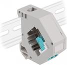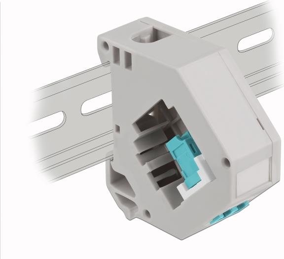 Der Adapter kann an einer 35 mm breiten Hutschiene befestigt werden. Zudem besitzt der Adapter auch ein kleines Beschriftungsfeld, welches individuell beschriftet oder mit verschiedenen Symbolen versehen werden kann.