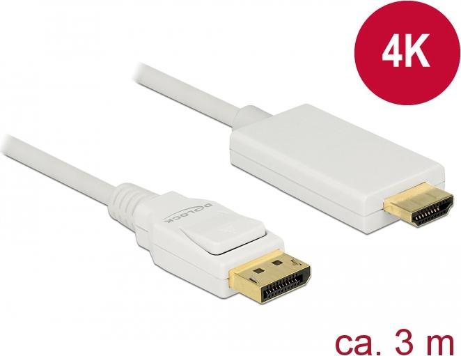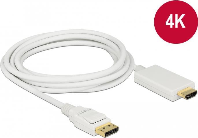 DeLOCK - Videokabel - DisplayPort / HDMI - HDMI (M) bis DisplayPort (M) - 3,0m - Dreifachisolierung - weiß - passiv, 4K Unterstützung (83819)