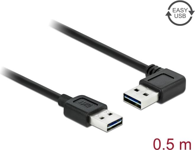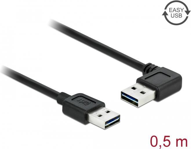 DeLOCK Easy - USB-Kabel - USB (M) links/rechts abgewinkelt, umkehrbar bis USB (M) umkehrbar - USB2.0 - 50cm - Schwarz (85176)