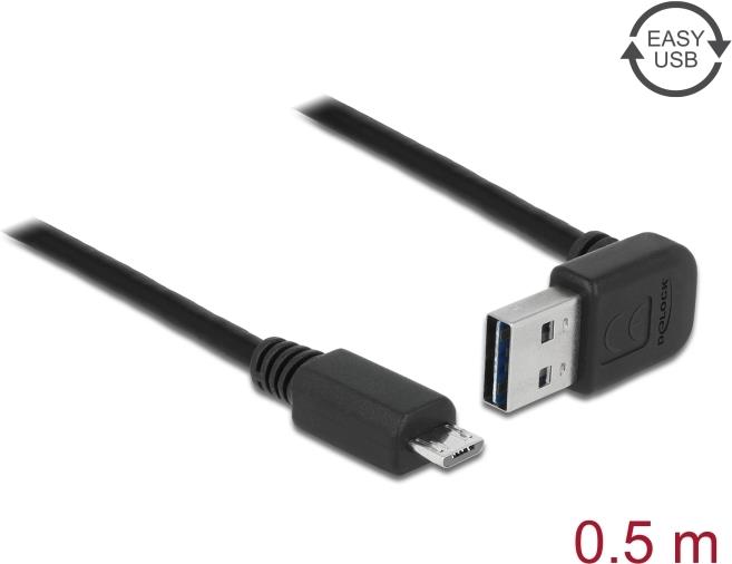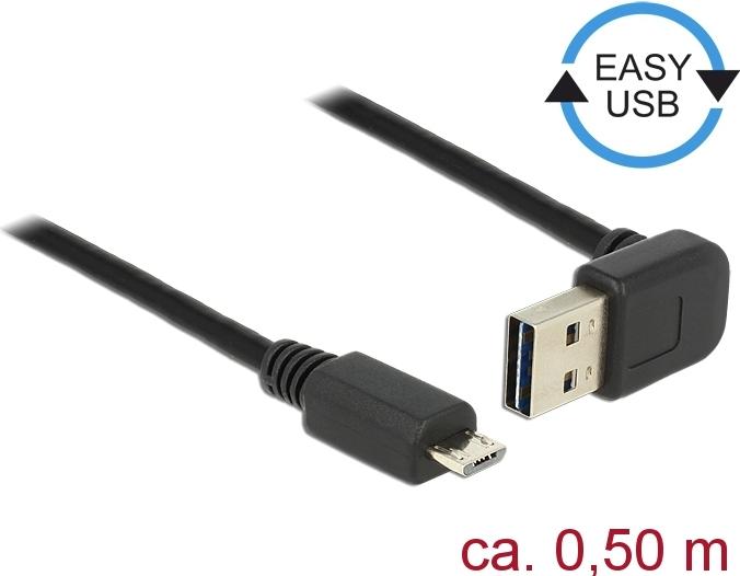 DeLOCK Easy - USB-Kabel - USB (M) up/down angled, reversible bis Micro-USB Type B (M) - USB2.0 - 50cm - Schwarz (85203)