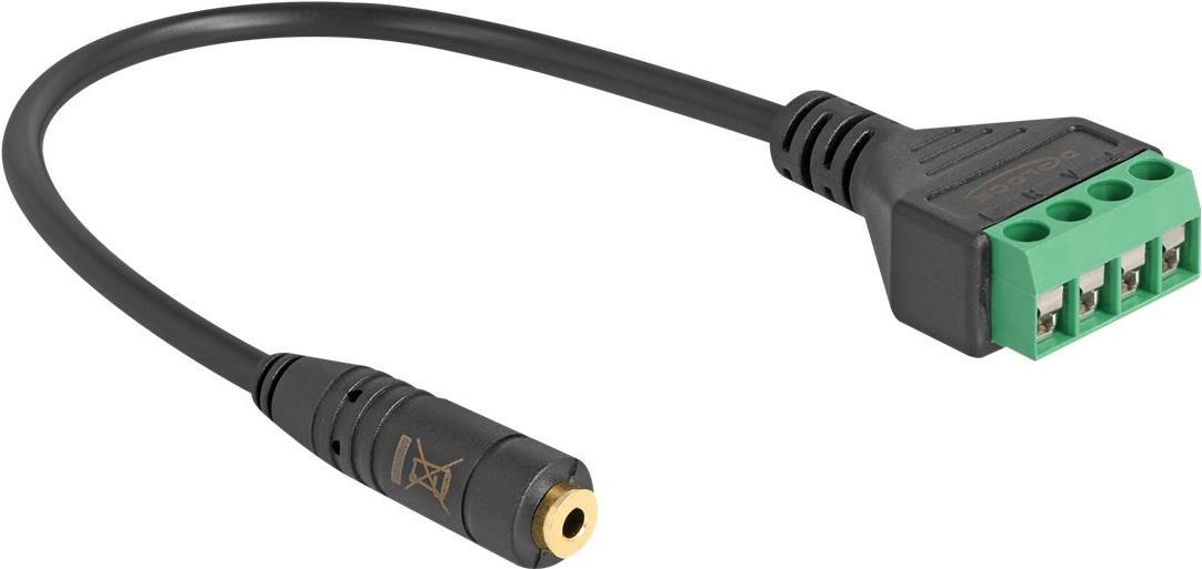 Delock - Audio-Adapter - 2,5 mm 4-pin stereo jack weiblich zu 4-poliger Anschlussblock - 20cm - Schwarz - verseilt, 2,54 mm Rastermaß, abisolierte Enden (66294)