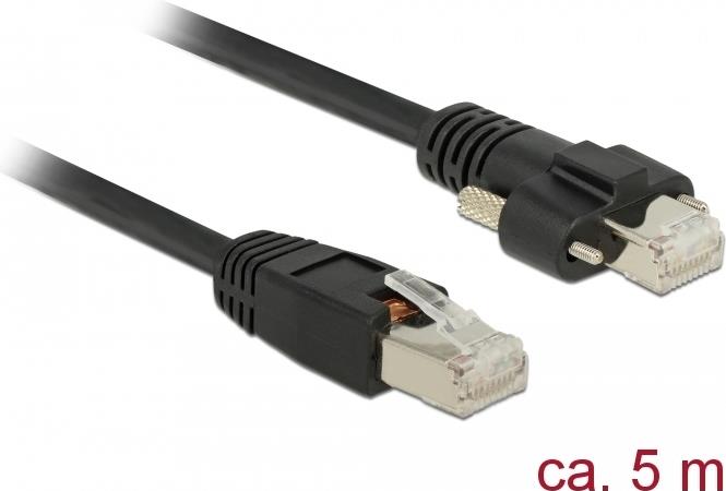 DeLOCK - Patch-Kabel - RJ-45 (M) schraubbar bis RJ-45 (M) - 5,0m - SSTP-Kabel - CAT 6 - Schwarz (85670)