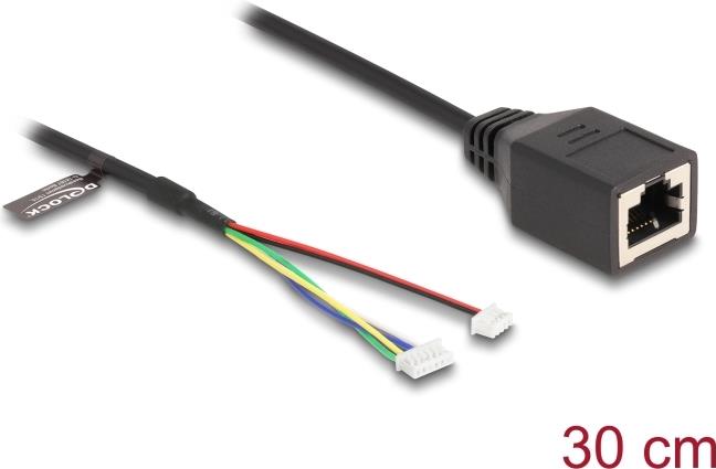 Delock Kabel RJ45 Buchse zu Pfostenbuchse 1,25 mm 4 Pin und Pfostenbuchse 1,25 mm 6 Pin Cat.5e 30 cm schwarz (88007)