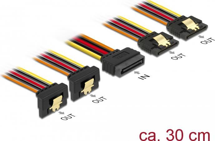 DeLOCK - Netz-Splitter - SATA Leistung (S) gerade bis SATA Leistung (R) angled / straight - 3,3 / 5 / 12 V - 30cm - eingerastet - Schwarz, Gelb, Rot, orange (60151)