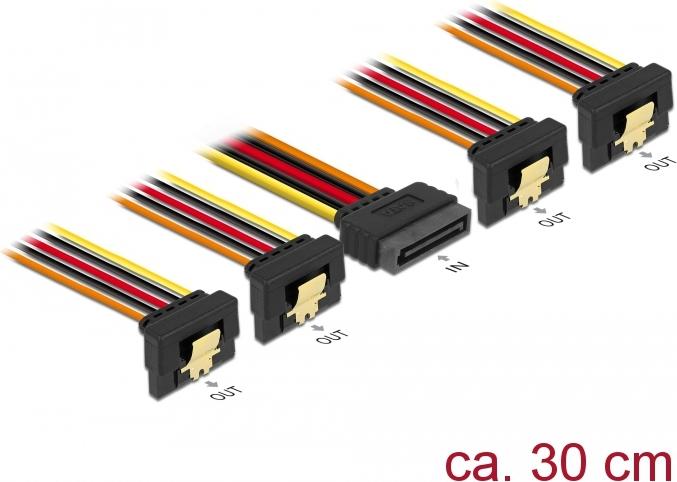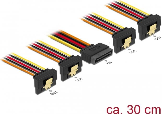 DeLOCK - Netz-Splitter - SATA Leistung (S) gerade bis SATA Leistung (R) gewinkelt - 3,3 / 5 / 12 V - 15cm - eingerastet - Schwarz, Gelb, Rot, orange (60167)