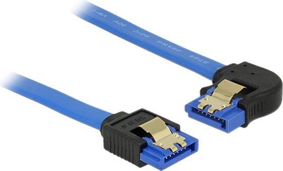 Delock Kabel SATA 6 Gb/s Buchse gerade > SATA Buchse links gewinkelt 70 cm blau mit Goldclips (84986)