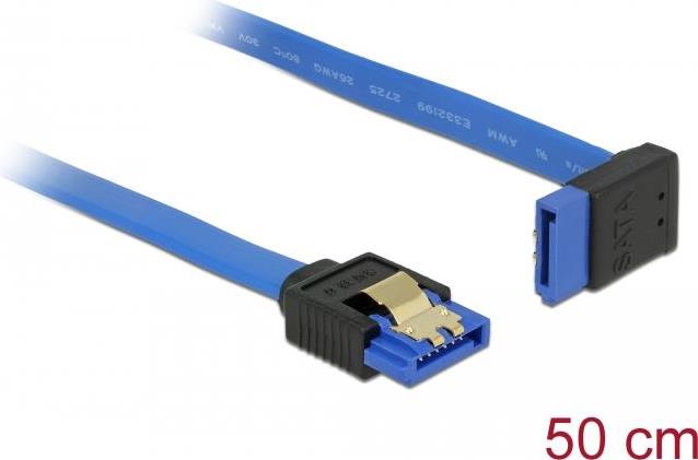 DeLOCK - SATA-Kabel - Serial ATA 150/300/600 - SATA (R) nach oben gewinkelt bis SATA (R) gerade - 50cm - eingerastet - Blau (84997)