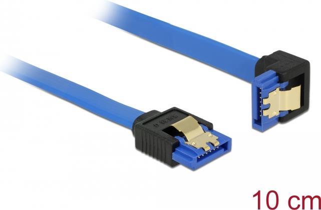 • Delock Kabel SATA 6 Gb/s Buchse gerade > SATA Buchse unten gewinkelt 10 cm blau mit Goldclips (85088)