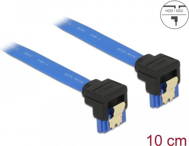 • Delock Kabel SATA 6 Gb/s Buchse unten gewinkelt > SATA Buchse unten gewinkelt 10 cm blau mit Goldclips (85094)