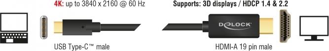 Dieses Kabel von Delock ermöglicht den Anschluss eines HDMI Monitors an einen PC oder ein Notebook mit USB-C oder Thunderbolt 3 Schnittstelle, wie z. B. ein MacBook oder ein Chromebook. Die Schnittstelle muss den Displayport Alternate Mode unterstützen.