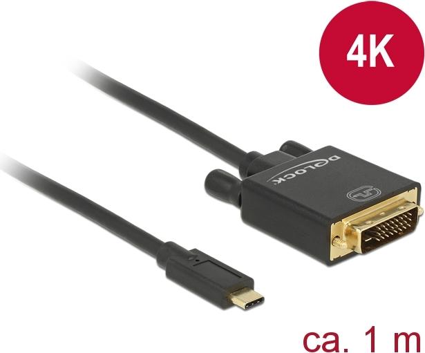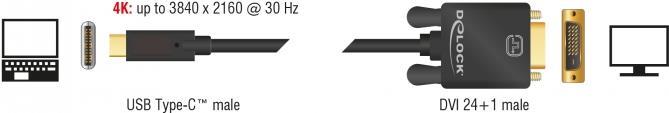 Dieses Kabel von Delock ermöglicht den Anschluss eines DVI Monitors an einen PC oder ein Notebook mit USB-C oder Thunderbolt 3 Schnittstelle, wie z. B. ein MacBook oder ein Chromebook. Die Schnittstelle muss den Displayport Alternate Mode unterstützen.