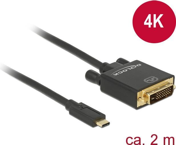 Dieses Kabel von Delock ermöglicht den Anschluss eines DVI Monitors an einen PC oder ein Notebook mit USB-C oder Thunderbolt 3 Schnittstelle, wie z. B. ein MacBook oder ein Chromebook. Die Schnittstelle muss den Displayport Alternate Mode unterstützen.