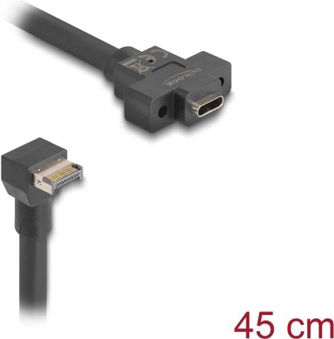 DeLOCK - USB-Kabel intern auf extern - 20-poliger USB 3.0 Kopf (M) gewinkelt bis USB-C (W) Paneel montierbar - 45 cm