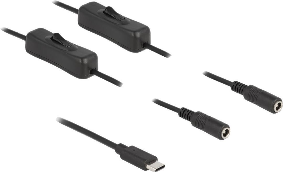 Delock - Netz-Splitter - USB-C (M) bis Gleichstromstecker 5,5 x 2,1 mm (W) - 1,0m - Schwarz (86800)