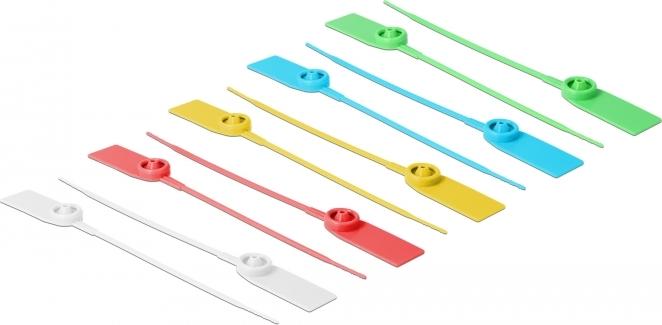 Die Kabelbinder können individuell beschriftet oder mit verschiedenen Symbolen versehen werden, um die Kabelbündel voneinander zu unterscheiden.
