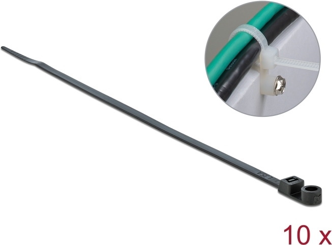 DeLOCK Cable Tie with Fastening Eyelet - Kabelbinder - 30cm - Schwarz (Packung mit 10) (18951)