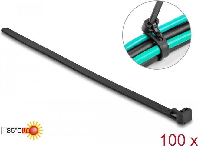 Delock - Kabelbinder - heat resistant, reusable - 20 cm - Schwarz (Packung mit 100)