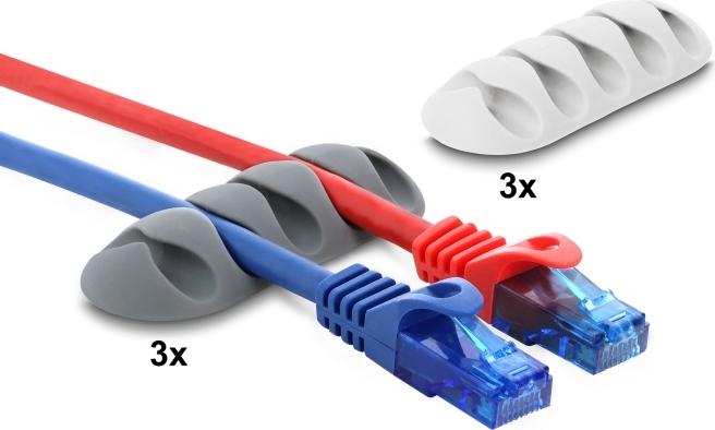 3 x Kabelhalter (grau), 3 x Kabelhalter (weiß) |