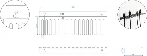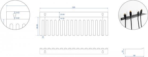 Diese Kabelhalterung von Delock eignet sich zur Wandmontage, um z. B. Laborkabel oder Testequipment einzuhängen und eine übersichtliche und ordentliche Sortierung zu ermöglichen.