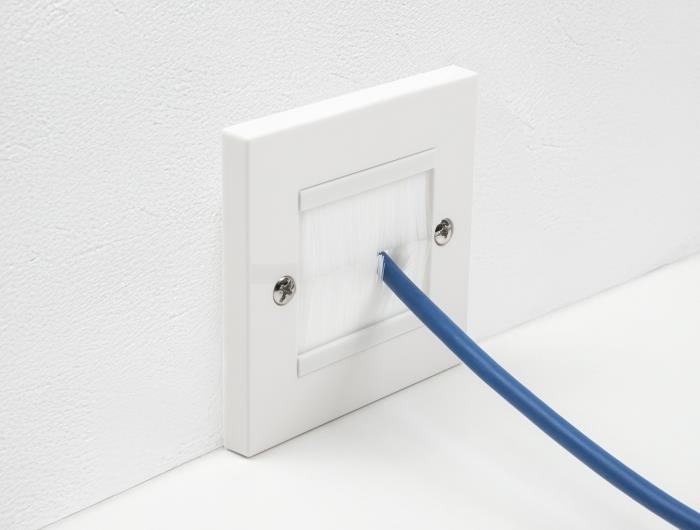 Diese Abdeckblende von Delock eignet sich für die Wandmontage, um freiliegende Kabel hindurchzuführen und Öffnungen in Wänden, etc. zu verdecken.