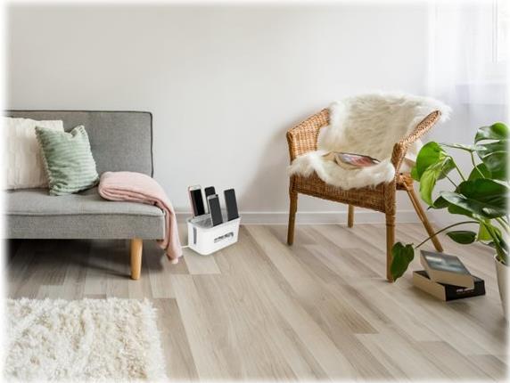 Diese Kabelmanagement Box von Delock dient zum Verstauen und Ordnen diverser Kabel für Handys oder Tablets. Sie schützt zudem Kinder und Haustiere vor möglichen Gefahren aufgrund freiliegender Stromquellen. Im Inneren der Box kann eine Steckdosenleiste platziert werden, zum Anschluss verschiedener Netzteile. Mit Hilfe der 4 Öffnungen am Deckel können die einzelnen Kabel nach Außen geführt und direkt mit einem Mobilgerät verbunden werden. Gleichzeitig dient der Rand des Deckels als Ständer für das angeschlossene Gerät. Die große Öffnung an der Vorderseite kann z. B. zum Durchführen dickerer Kabel verwendet werden. Das am Deckel befindliche Aufbewahrungsfach ermöglicht das Verstauen von weiterem Zubehör. Mit ihrem schlichten Design fügt sich die Box in jede Räumlichkeit ein, und sorgt für Ordnung und Schutz der freiliegenden Kabel.