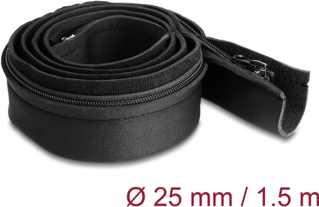 Delock Kabelschlauch Neopren flexibel mit Reißverschluss 1,5 m x 100 mm schwarz (20913)