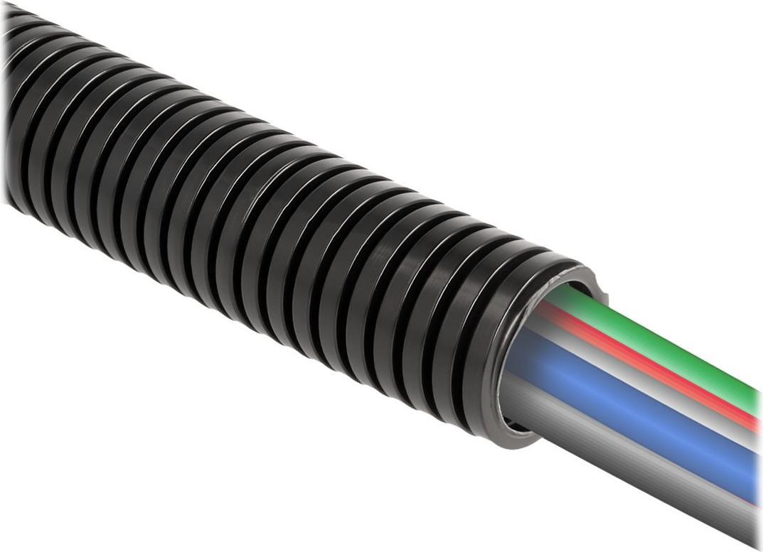 Dieser wellenförmige Kunststoffschlauch von Delock eignet sich zum Bündeln von freiliegenden Kabeln, elektrischen Leitungen oder Drähten, um diese vor Verschmutzungen oder Beschädigungen zu schützen.