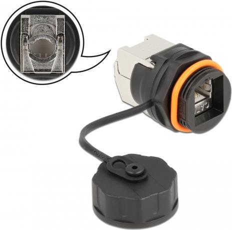 Dieser Kabelverbinder von Delock kann zum Anschluss eines Netzwerkkabels an eine RJ45 Buchse verwendet werden. Das Gehäuse mit Dichtring und schraubbarer Verschlusskappe schützt die RJ45 Buchse vor Verschmutzung und Feuchtigkeit und eignet sich ideal für den Außenbereich.