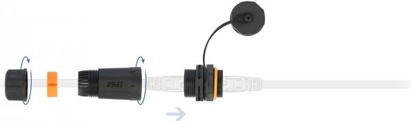 Mit diesem Kabelverbinder von Delock können zwei RJ45 Netzwerkkabel miteinander verbunden oder verlängert werden und ist ideal für den Außenbereich z. B. im Garten geeignet. Bei dieser RJ45 Kupplung befindet sich auf einer Seite eine wasserdichte Kabeldurchführung mit Gehäuse und Schraubgewinde, die mit einem Silikon-Dichtring geschützt wird. Die andere Seite kann mit der Schutzkappe verschlossen werden.