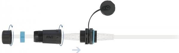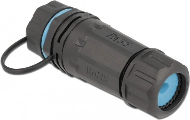Mit diesem Kabelverbinder von Delock können zwei RJ45 Netzwerkkabel miteinander verbunden oder verlängert werden und ist ideal für den Außenbereich z. B. im Garten geeignet. Bei dieser RJ45 Kupplung befindet sich auf einer Seite eine wasserdichte Kabeldurchführung mit Gehäuse und Schraubgewinde, die mit einem Silikon-Dichtring geschützt wird. Die andere Seite kann mit der Schutzkappe verschlossen werden.
