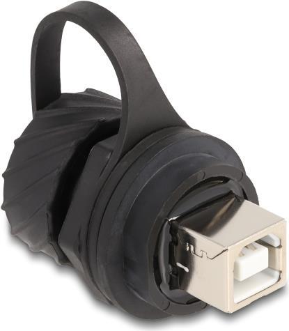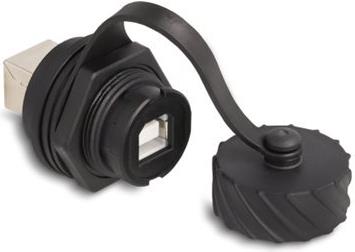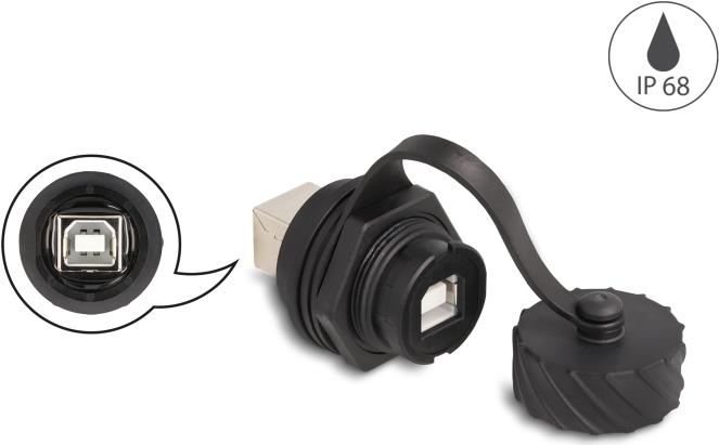Delock Kabelverbinder USB 2.0 Typ-B Buchse zu Buchse zum Einbau mit Bajonett-Verschlusskappe IP68 staub- und wasserdicht schwarz (88004)