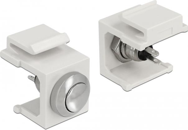 Dieser Keystone Drucktaster von Delock dient als Ein- und Ausschalter und kann z. B. in ein Gehäuse oder Gerät eingebaut und verkabelt werden.