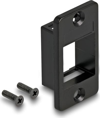 Der modulare Einsatzhalter von Delock bietet Vielseitigkeit und Komfort für die Aufnahme von Keystone-Modulen. Mit seiner Konstruktion aus Zinkdruckguss gewährleistet dieser Halter Langlebigkeit und zuverlässige Leistung. Er eignet sich ideal für die Montage in Panels und Gehäusen und wird mit zwei Schrauben für die Installation geliefert. Die integrierte Typenschildfunktion ermöglicht eine klare Beschriftung und macht ihn zu einer praktischen Ergänzung für jede Einrichtung. Dieser Halter ist für Keystone-Module mit maximalen Abmessungen von 19,2 x 14,9 mm ausgelegt und erfordert einen Gehäuseausschnitt von 16,8 x 22,3 mm, sodass er sich Ihren Installationsanforderungen anpasst.