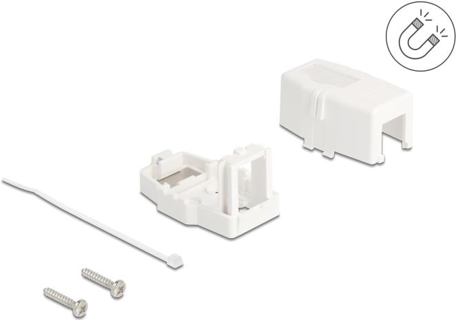 Das modulare Einbaugehäuse von Delock bietet eine praktische und effiziente Keystone-Aufputzdose. Dieses Produkt verfügt über ein wandmontierbares Design mit einem Magnetfuß, wodurch die Installation einfach und vielseitig ist. Mit einer 180°-Kabelführung und einem integrierten Typenschild wird das Ordnen und Beschriften von Kabeln zu einer mühelosen Aufgabe, sodass der Arbeitsplatz stets aufgeräumt bleibt.