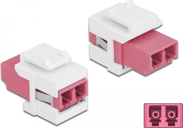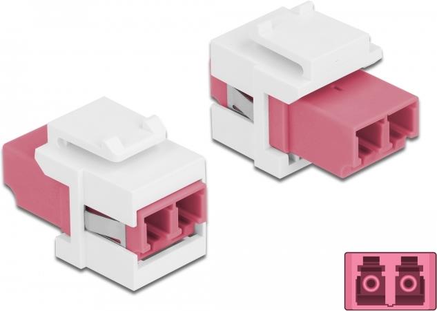 Delock - Netzwerkkoppler - LC Multi-Mode (W) bis LC Multi-Mode (W) - Glasfaser - Duplex - Keystone-Buchse - weiß, violett (86818)