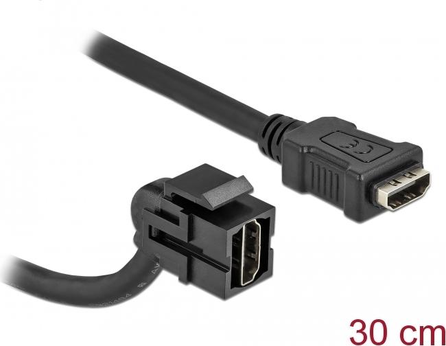 Delock - HDMI-Kabel - HDMI weiblich angled, keystone bis HDMI männlich gerade - 30cm - Schwarz - unterstützt 4K 30 Hz (3840 x 2160) (86853)