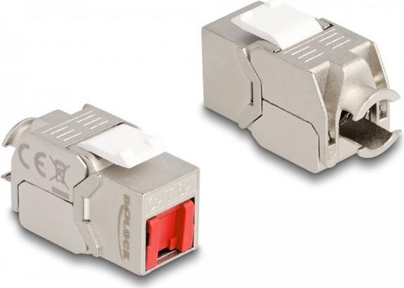 Delock - Keystone-Modul - RJ-45 (W) zu LSA (W) gewinkelt - STP - CAT 6a - weiß, Silber, Rot (87952)