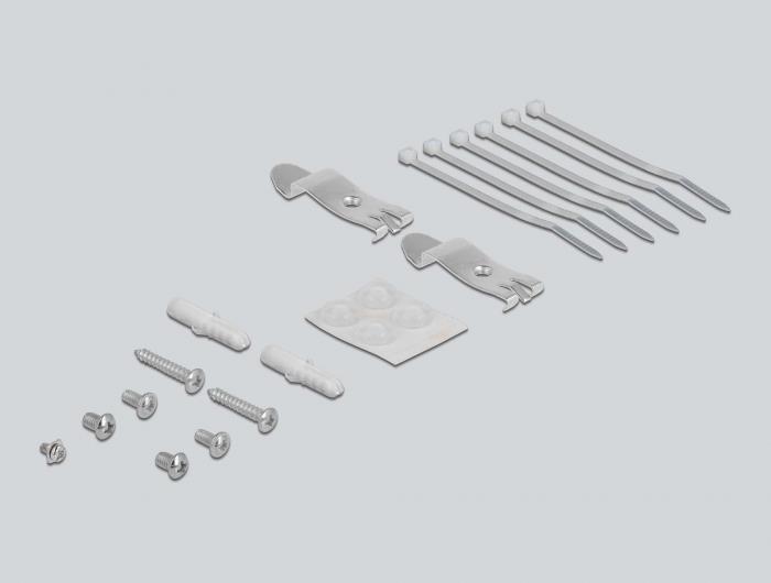 2 Schrauben, 6 Kabelbinder, 2 DIN-Schienen-Halterung |