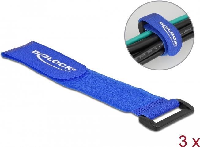 Delock - Klettverschluss-Cinchkabelbinder - 28cm - Blau (Packung mit 3) (19536)