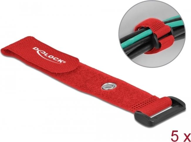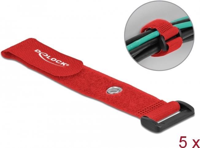 Delock - Klettverschluss-Cinchkabelbinder - 19cm - Rot (Packung mit 5) (19545)
