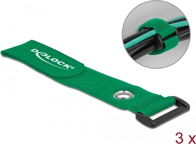 Delock - Klettverschluss-Cinchkabelbinder - 28cm - grün (Packung mit 3) (19553)