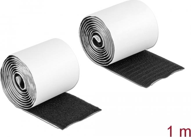 Das Klettband Set von Delock besteht aus einer Rolle selbstklebendem Haftband und einer Rolle selbstklebendem Flauschband. Es kann als Schnellbefestiger für diverse Anwendungen eingesetzt werden, z. B. für Möbel, Bauteile und zum Bündeln von einzelnen Kabeln oder für diverse Bastelprojekte.