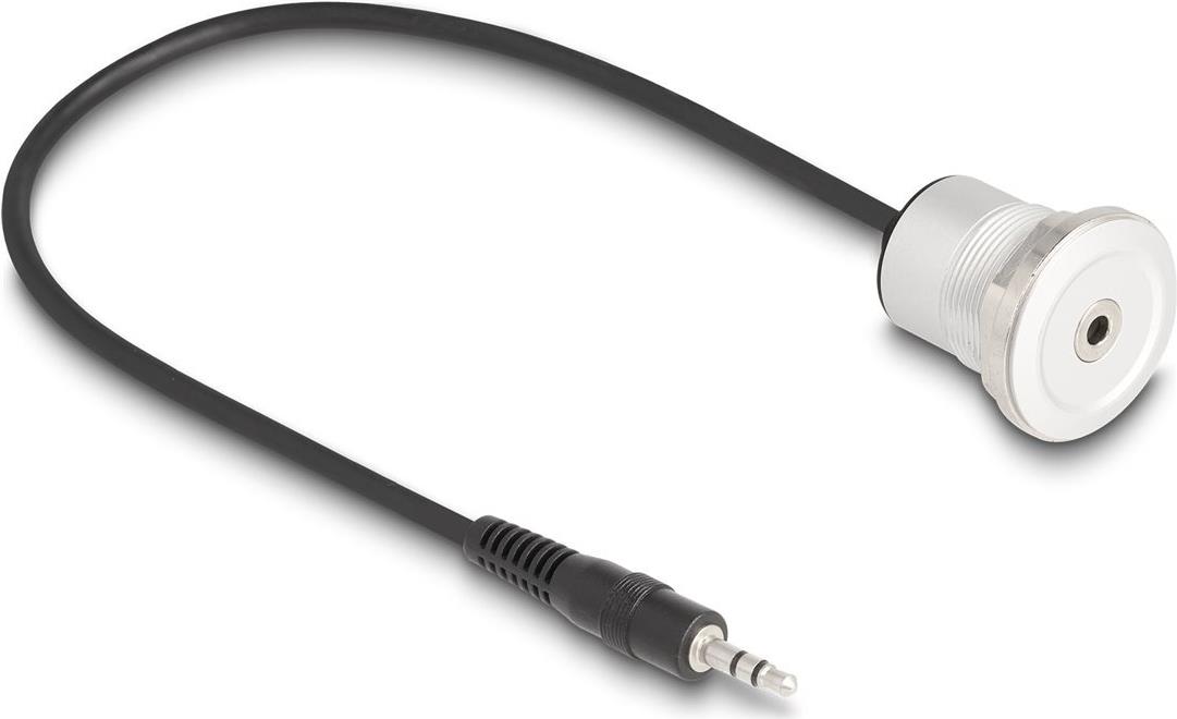 Delock - Audioverlängerungskabel - mini-phone stereo 3,5 mm weiblich Paneel montierbar zu mini-phone stereo 3,5 mm männlich - 30cm - Schwarz, Silber - M22 Gewinde (88188)