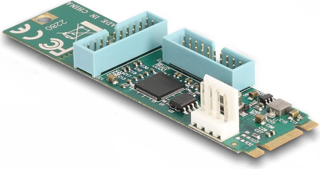 Der Delock 20-polige USB 3.0-Header-zu-2-x-9-poliger-USB-Typ-A-Adapter erweitert die Anschlussmöglichkeiten Ihres Systems. Mit einer Länge von 50 cm bietet dieser Schnittstellenadapter sowohl interne als auch externe Anschlussmöglichkeiten und ist somit vielseitig für verschiedene Setups einsetzbar. Der Adapter unterstützt M.2 B+M/M Key-Anschlüsse und ist mit M.2 2280-Festplatten kompatibel, wodurch die Leistung von Datenspeicherlösungen gewährleistet ist. Er bietet eine Datenübertragungsrate von 5 Gbit/s über einen zuverlässigen PCIe-Hostbus und ermöglicht so eine effiziente Datenübertragung.