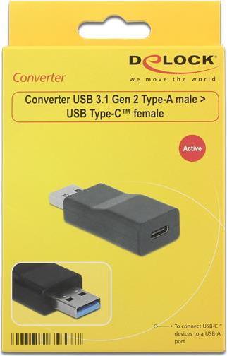 Delock Konverter USB 3.1 Gen 2 Typ-A Stecker > USB Type-C™ Buchse Aktiv schwarz (65696)