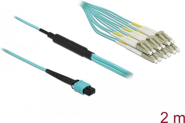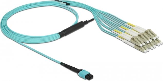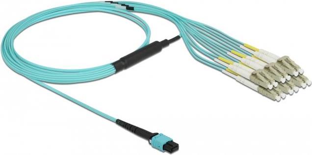 Delock - Fan-out-Kabel - MPO/UPC Multimodus (W) bis LC/UPC Multi-Modus (M) - 2,0m - 3 mm - Glasfaser - Duplex - 50/125 Mikrometer - OM3 - halogenfrei - Aquamarin (84872)