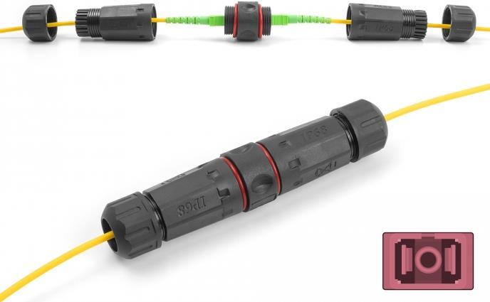 Dieser Kabelstecker von Delock verbindet zwei Glasfaserkabel miteinander und ist ideal für den Außeneinsatz geeignet. Der Koppler bietet erhöhten Schutz vor Schmutz und Feuchtigkeit für die Verbindung der Netzwerkkabel.Hauptmerkmale