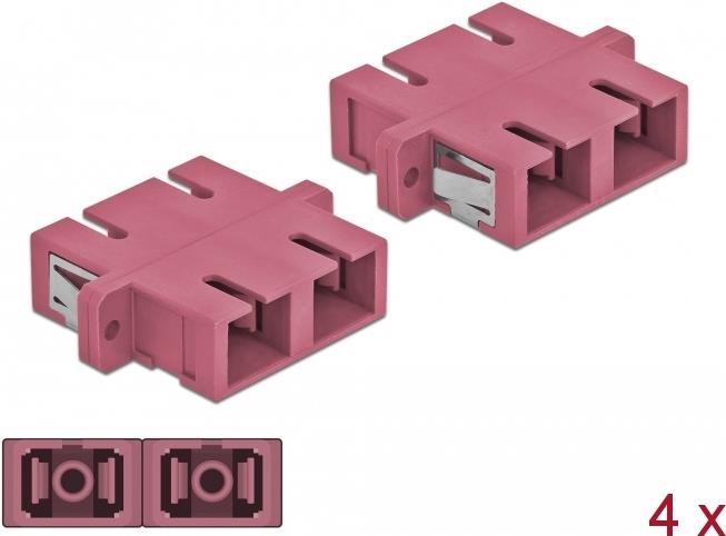 DeLOCK - Netzwerkkoppler - SC multi-mode (W) bis SC multi-mode (W) - Glasfaser - OM4 - violett (Packung mit 4) (85998)