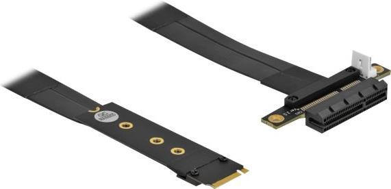 Dieser Adapter von Delock kann verwendet werden, um eine PCI Express Karte an einen M.2 Slot anzuschließen. Das flexible Kabel ermöglicht eine platzsparende Installation im Computer Gehäuse. Der zusätzliche Stromanschluss kann bei Bedarf die PCIe Karte mit 12 V Spannung versorgen.
