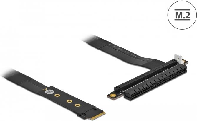 Dieser Adapter von Delock kann verwendet werden, um eine PCI Express Karte an einen M.2 Slot anzuschließen. Das flexible Kabel ermöglicht eine platzsparende Installation im Computer Gehäuse. Der zusätzliche Stromanschluss kann bei Bedarf die PCIe Karte mit 12 V Spannung versorgen.